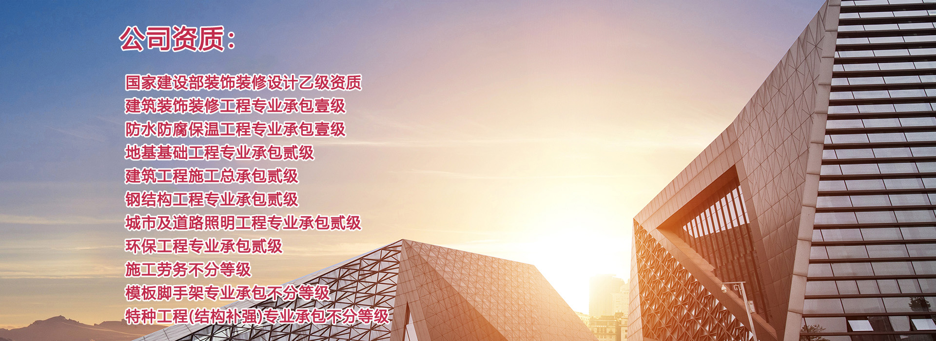 河南天恒建筑裝飾工程有限公司成立于2004年,注冊資金4000萬元,擁有正規(guī)的建筑裝飾工程設(shè)計專項乙級、建筑裝修裝飾工程專業(yè)承包壹級、防水防腐保溫工程專業(yè)承包壹級、地基基礎(chǔ)工程專業(yè)承包貳級、建筑工程施工總承包貳級、鋼結(jié)構(gòu)工程專業(yè)承包貳級、城市及道路照明工程專業(yè)承包貳級、環(huán)保工程專業(yè)承包貳級等多個建筑業(yè)企業(yè)資質(zhì)。